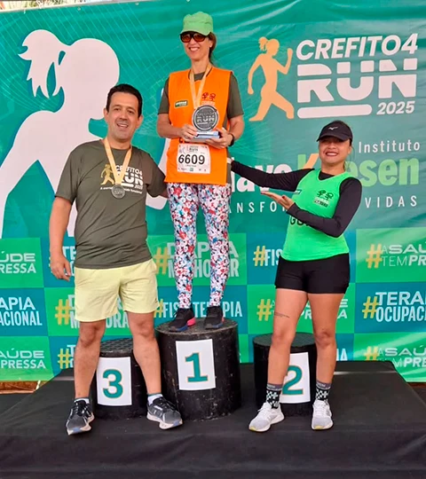 Na edição de 2025 da Crefito Run, realizada em Belo Horizonte, a atleta com deficiência visual Cristina, participante do Instituto Corre Pra Ver, conquistou o 1º lugar na categoria 5km, acompanhada de sua guia Iris. A corrida foi marcada por ritmo constante, foco e uma conexão que ultrapassou os limites da pista.